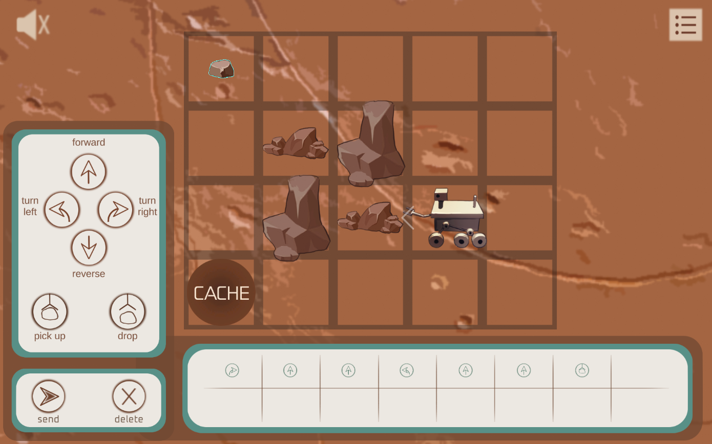 Piloting Red Rover lets players step into the shoes of a NASA employee sending strings of instructions to Perseverance. The goal: to collect a sample of Martian soil or stone, then place it in a cache. As players look down on the rover from above, they have to use spatial reasoning and critical thinking to program basic blocks of code. And don’t let the educational nature fool you - this is fun for players of all ages!